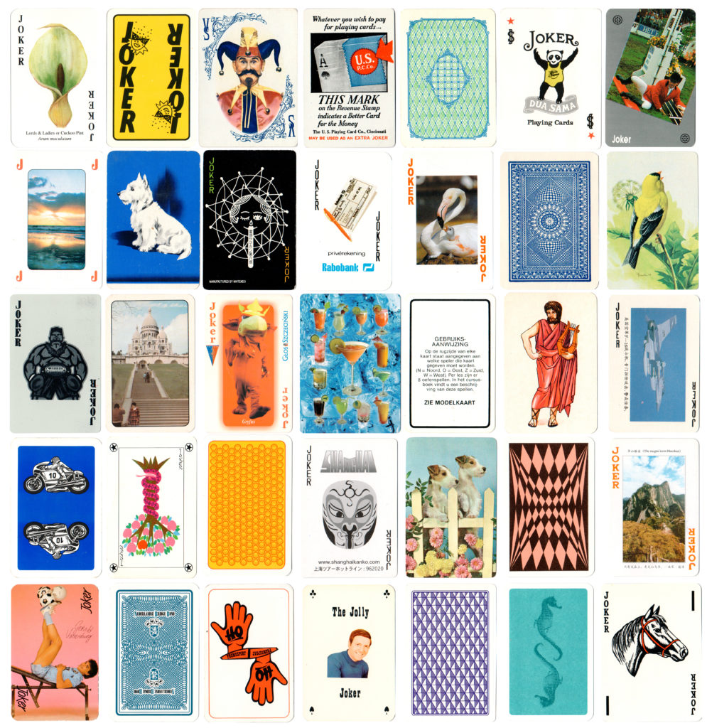 The Wild Card Collection consist out of a collage made of 35 Wild Cards. The artist came in the possession of a collection of around 3000 Joker playing cards and made a selection for this created collage-work.